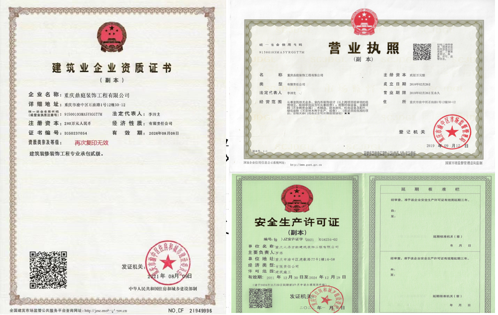 重慶鼎庭裝飾是一家具有裝飾協(xié)會(huì)權(quán)威認(rèn)證的裝修二級(jí)施工資質(zhì)企業(yè).公司以設(shè)計(jì)、施工為一體,致力于為客戶打造高品質(zhì)的綜合公裝項(xiàng)目.聯(lián)系電話:17623066466主營業(yè)務(wù)商業(yè)空間室內(nèi)裝飾:憑借專業(yè)的設(shè)計(jì)團(tuán)隊(duì)和精湛的施工技藝,為各類商業(yè)場(chǎng)所賦予獨(dú)特的魅力和個(gè)性.裝修項(xiàng)目包括《工業(yè)園區(qū)辦公樓廠房裝修,宿舍樓裝修,酒店裝修,辦公室裝修,美容院裝修,醫(yī)院診所裝修,學(xué)校幼兒園裝修,廠房裝修,超市裝修,口腔診所裝修,養(yǎng)老院裝修,足療洗浴會(huì)所裝修,連鎖店裝修》等公司核心優(yōu)勢(shì)1.專業(yè)資質(zhì):擁有裝飾協(xié)會(huì)頒發(fā)的二級(jí)施工資質(zhì),確保施工質(zhì)量和工程安全。2.設(shè)計(jì)施工一體化:專業(yè)的設(shè)計(jì)團(tuán)隊(duì)與經(jīng)驗(yàn)豐富的施工隊(duì)伍緊密合作,實(shí)現(xiàn)從設(shè)...